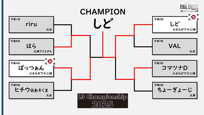 L3構築におけるシーズンの王者を決めるトーナメントであり、上位2名が『世界選手権 2025』日本代表の権利を獲得します。