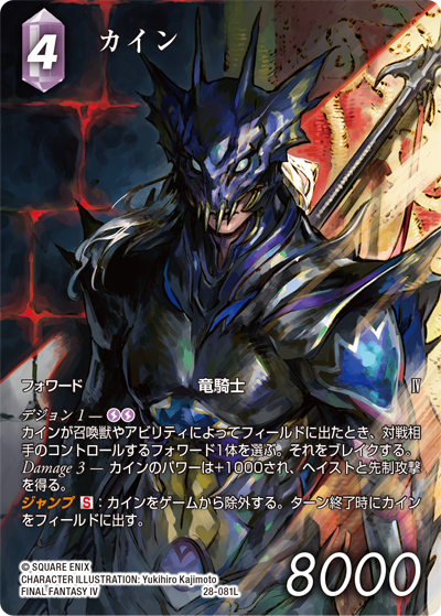 今回ご紹介するのは、『FINAL FANTASY IV』に登場する【28-081L】カイン。こちらは梶本ユキヒロさんによる描き下ろしイラストです!