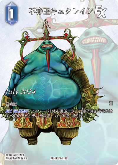 賞品:参加者全員に【PR-172/9-114C】不浄王キュクレインを1枚、優勝者とランダムに選ばれた1名の方に【PR-172/9-114C】不浄王キュクレイン(プレミアム版)1枚を進呈いたします。
